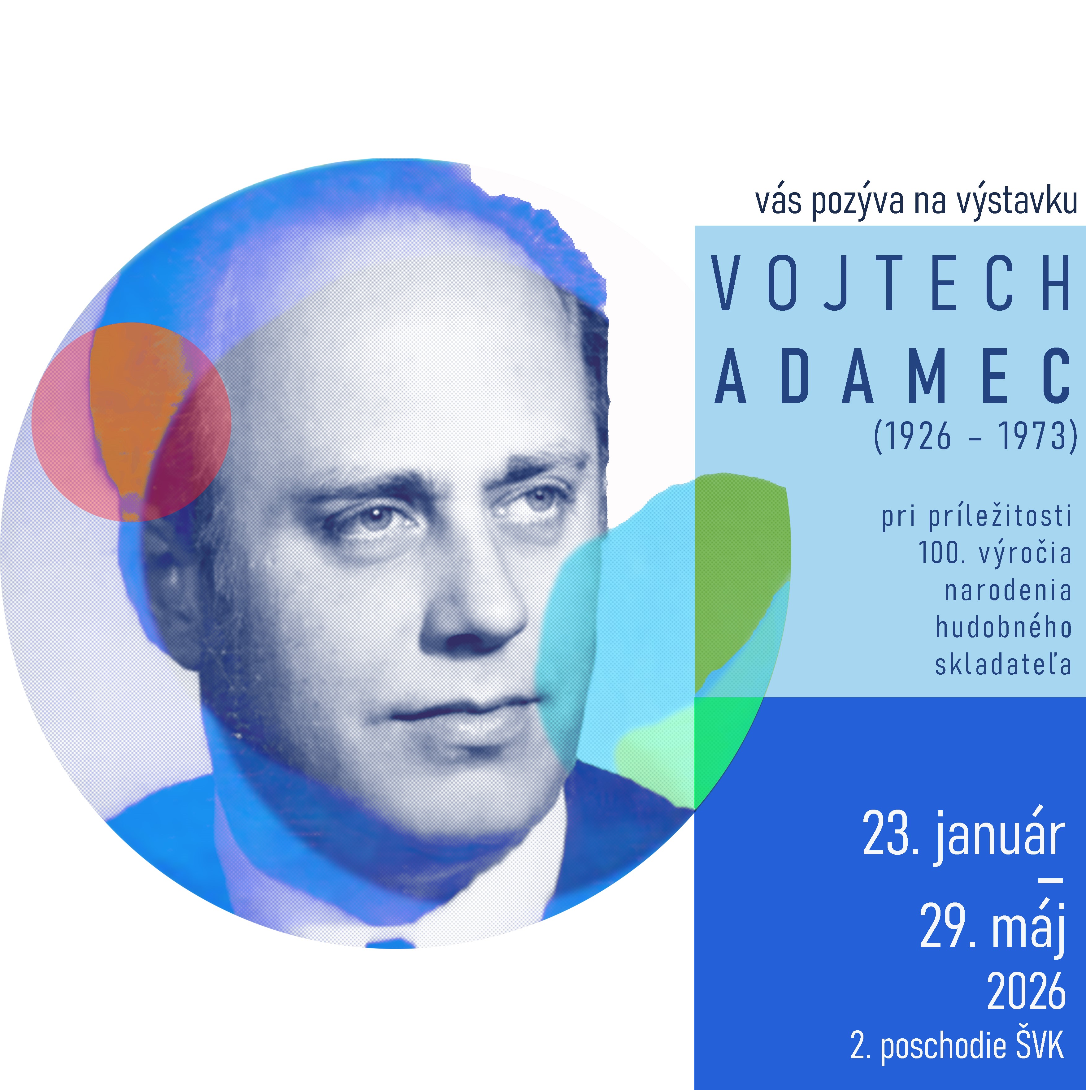 Výstavka bude sprístupnená od 23. januára do 29. mája 2026 na 2. poschodí ŠVK v Banskej Bystrici. Návštevníci sa môžu tešiť na výber dokumentov, hudobných materiálov a sprievodných informácií, ktoré približujú Adamcov umelecký odkaz.